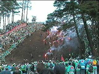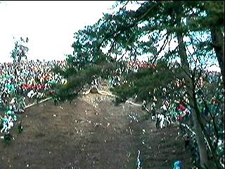 この中、華乗り(御柱の一番先頭に乗る人)は最後まで振り落とされずに、降りてきました。今回の木落し(下社)の中ではこの御柱だけだったそうです。