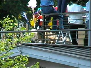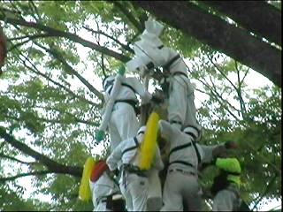 無事に垂直となり、銀紙の吹雪が舞っているところ。