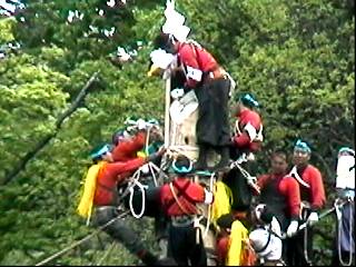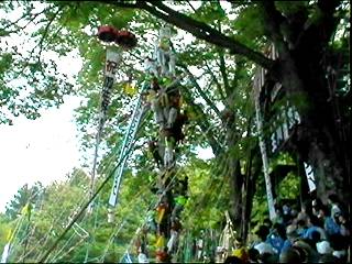 御幣(ごへい)が柱の先端に取り付けられます。
