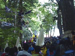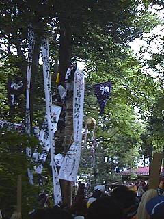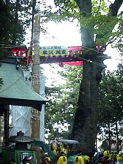 無事建てられ、垂れ幕が下がり、くす玉が割られ、銀紙が舞いました(しかしこの間の作業はてこずっていたのか、だいぶ経ってました)。