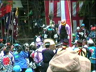 てっぺん乗りの人を先頭に、柱の上に乗ります。