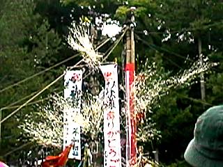 手前の補助の柱から、巨大なクラッカーが鳴り響きました。