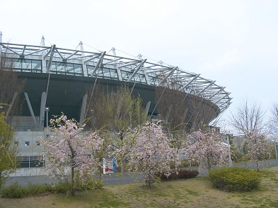 2001年に東京スタジアム(現・味の素スタジアム)が完成したとき、西側の道に桜が植えられました。