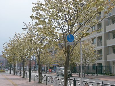 味スタから飛田給駅へ向かうと、旧甲州街道との交差点から先が「緑の桜」並木になっています。