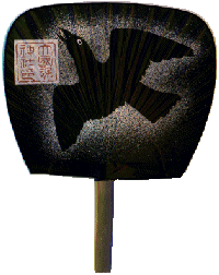 もうひとつの縁起物が、”からすうちわ”です。真っ黒い団扇に、烏の絵が書かれており、ちょっと変わった雰囲気の団扇です。