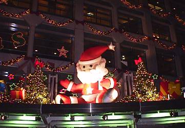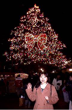 高さ20メートル・樹齢100年以上というヒマラヤ杉に、約2万個以上のイルミネーションが点灯されていました。木の回りが非常に太く、ベルなど一つ一つの装飾もとても大きいのです。それがさまざまに変化しながら輝くのですから、誰もが思わずみとれてしまいます。何より、枝についた大きなリボンが可愛らしくてとってもチャーミング!