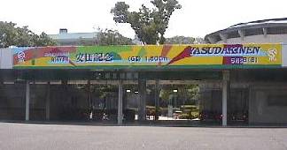 競馬場正面入り口の「安田記念」の看板。 こちらは東口の看板。