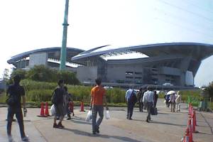 快晴の埼玉スタジアムと雨の宮城スタジアム